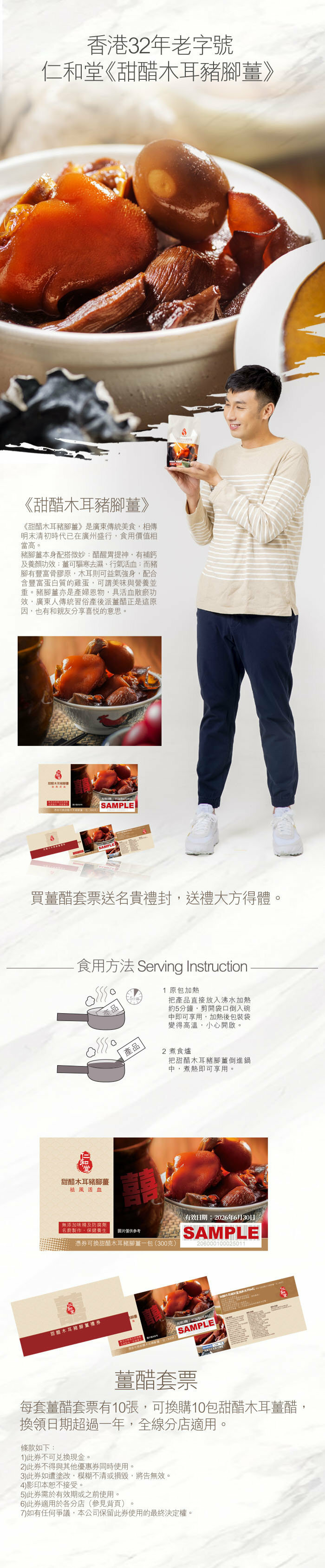 仁和堂X元進莊晨露滴雞精10包裝6盒+仁和堂甜醋木耳豬腳薑60包,送禮自用皆宜。