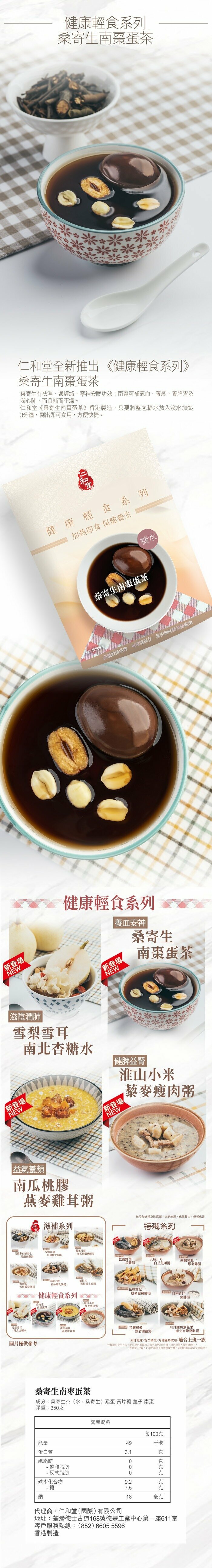仁和堂《桑寄生南棗蛋茶》香港製造,只要將整包糖水放入滾水加熱3分鐘,倒出即可食用,方便快捷。