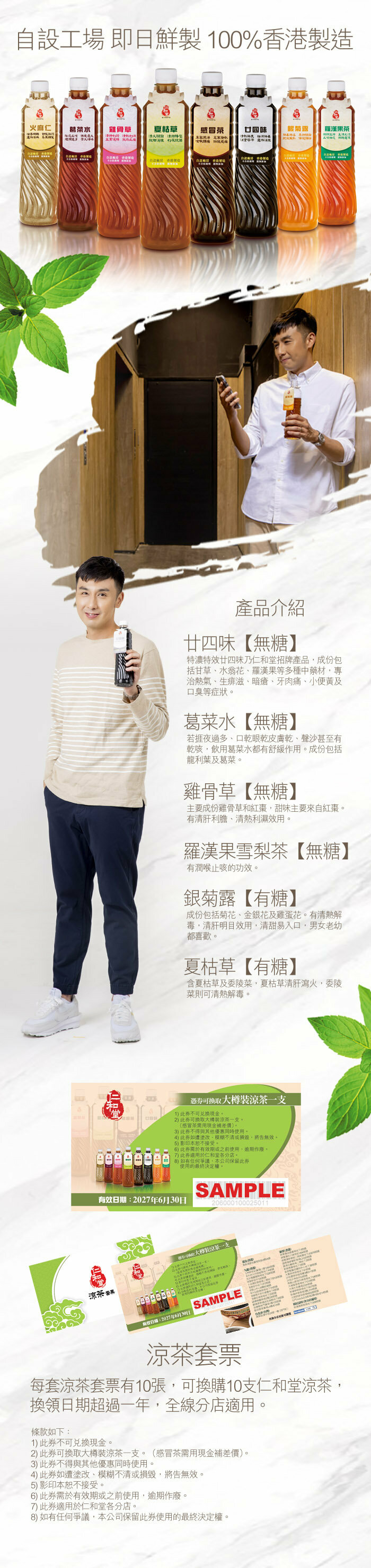 【無糖】廿四味:特濃特效廿四味乃仁和堂招牌產品,成份包括甘草、水翁花、羅漢果等多種中藥材,專治熱氣、生痱滋、暗瘡、牙肉痛、小便黃及口臭等症狀。